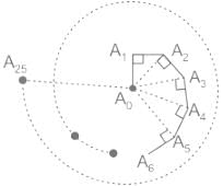 A bug moves in a straight line from a point A0 to a point A1 1 cm away. It then turns by an angle of 90° and moves straight another 1 cm to reach a point A2. Then it moves 1 cm perpendicular to the line joining A0 to A2 to a point A3. It continues this way as shown, moving 1cm every time till it reaches a point A25. What is the straight line distance from A0 to A25?