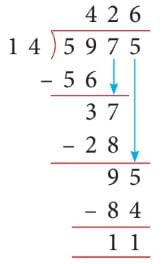 What is the outcome of dividing 5975 by 14, and what is the remainder?