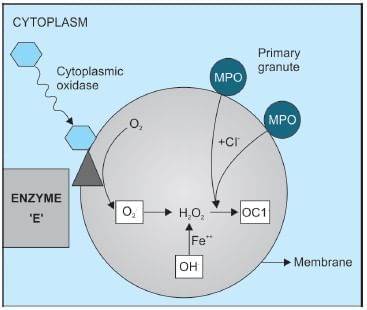 In genetic deficiency of MPO the increased susceptibility to infection is due to: (Delhi PG 09 RP)