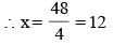4x = 88 – 40 = 48