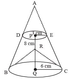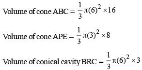 So, Volume of material = cone ABC – (cone ADE + conical cavity of BRC).