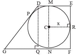 A trapezium DEFG is circumscribed about a circle that has centre at C. If DM = 1 cm, GN = 4 cm and the measure of ∠DEF = ∠EFG = 90°, then find the radius of the circle.
