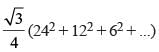 Given an equilateral triangle T1 with side 24 cm, a second triangle T2 is formed by joining the midpoints of the sides of T1. Then a third triangle T3 is formed by joining the midpoints of the sides of T2. If this process of forming triangles is continued, the sum of the areas, in sq cm, of infinitely many such triangles T1, T2, T3,... will be