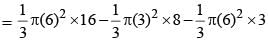 The top and bottom radii of a frustrum of a solid cone are 3 cm and 6 cm respectively. Its height is 8 cm. There is a conical cavity of height 3 cm and radius 6 cm at the bottom. The amount of material in the solid is