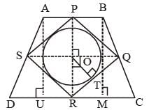 ABCD is an isosceles trapezium with BC = AD = 10 units, AB = 2 units and CD = 14 units. The mid-points of the sides of the trapezium are joined to form a quadrilateral PQRS. Find the ratio of the area of the circle inscribed in the quadrilateral PQRS to the area of trapezium ABCD.