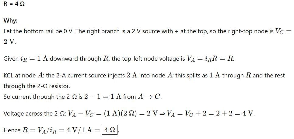 Given the current through R is i = 1A. The value of R is ______________ Ω