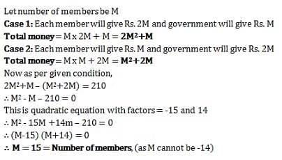 A group wanted to renovate their club. Each member contributed an amount equal to twice the number of members in the club. But the government contributed same amount as the number of members. If each member had contributed the same amount as the number of members and the government had given an amount twice the number of members, then they would have Rs. 210 less. How many members are there?