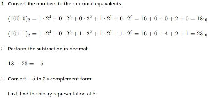 Perform the subtraction and represent your answer in 2’s complement form (10010)2 - (10111)2
