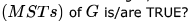 is an undirected simple graph in which each edge has a distinct weight, and e is a particular edge of G . Whichof the following statements about the minimum spanning trees