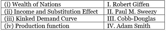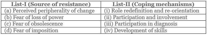 Match the items of List-II with those of List-I; and choose the correct code of combination: