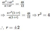 The first two terms of a geometric progression add up to 12. The sum of the third and the fourth terms is 48. If the terms of the geometric progression are alternately positive and negative, then the first term is