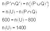 Let U be the universal set for sets P and Q. If n(P) = 400, n(Q) = 600 and n(P ∩ Q) = 200, then n(P' ∩ Q') = 600. What is the value of n(U)?