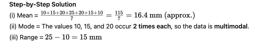 The mean of the data is 31.3°C. The mode is 31°C, which appears most frequently. The range is 3°C (33-30).