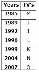 Seven branded TV’s- I, J, K, L, M, N  and O were launched in India in different years-1985, 1989, 1992, 1996, 1999, 2004 and 2007.
