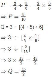 If Q = 3 ÷ [(4 ÷ 5) ÷ 6], R = [3 ÷ (4 ÷ 5)] ÷ 6 and S = 3 ÷ 4(5 ÷ 6) then