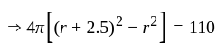 If the radius of a sphere is increased by decimetre (dm), then its surface area increases by