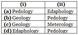 There are two basic branches of soil science, ____(i)____ is concerned with the influence of soils on living things, particularly plans and ____(ii)____ is focussed on the formation, morphology and classification of soils in their natural environment. Select the option which correctly fills the blanks.