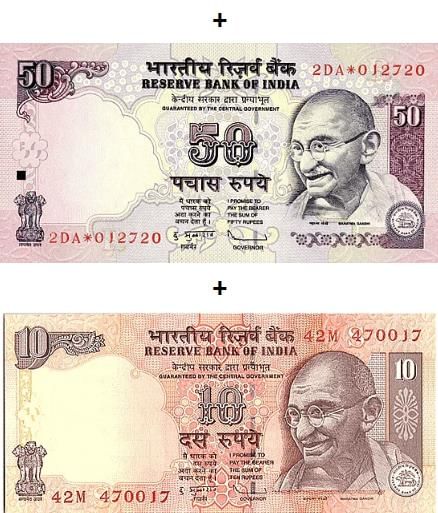₹ 20 + ₹ 50 = ₹ 70