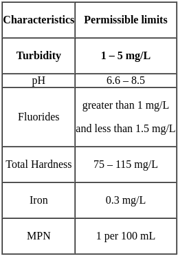 1. Permissible limit for turbidity is between 1 - 5 ppm