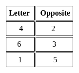 In first dice and second dice. Number '1' is common. The left letter will be opposite to each other writing them clockwise starting from 1.