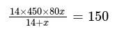 ⇒ 14 × 450 + 80x = 150 × 14 + 150x