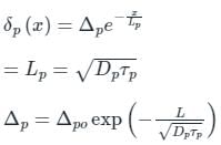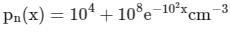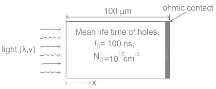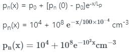 Light incident on the surface is absorbed at x = 0, resulting in pn (0) - p0 = 108 / cm3 excess holes at x = 0. The generation rate for x > 0 is zero)