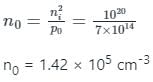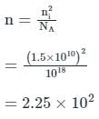Consider a silicon sample doped with ND = 1×1015/cm3 donor atoms. Assume that the intrinsic carrier concentration ni = 1.5×1010/cm3. If the sample is additionally doped with NA = 1×1018/cm3 acceptor atoms, the approximate number of electrons/cm3 in the sample, at T = 300 K, will be ______.