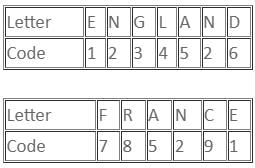 If in a certain code language, ENGLAND is written as 1234526 and FRANCE is written as 785291, then how is GREECE written in that language?