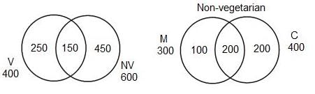 In Foodpur, where a person has to eat either vegetarian food or non-vegetarian food, there are 600 people who eat non-vegetarian food, 400 people who eat vegetarian food and 150 people who eat both. Of the people who eat non-vegetarian, there are 300 who eat mutton, 400 who eat chicken and 200 who eat both these types of meat.