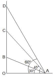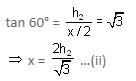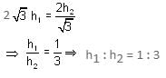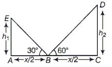 If two towers of heights h1 and h2 subtend angles 30° and 60°, respectively at the mid-point of the line joining their feet, then h1 : h2 is