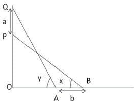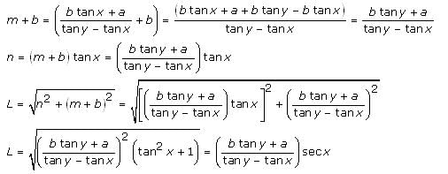 A pole of length 'L', leaning against a wall makes an angle x. When the foot of the pole was moved by a distance of 'b' towards the wall, the top of the pole moves by a distance 'a' upwards and the pole makes an angle y. What is the value of L?