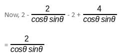 What is the value of x2 - 4 - y2 + 4/(cosθ sinθ) if x = secθ – cosecθ and y = tanθ – cotθ?