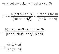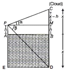 If the angle of elevation of a cloud from a height h above the level of water in a lake is α and the angle of depression of its image is β, then which of the following cannot be the height of the cloud above the level of water in the lake?