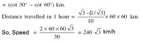 An aeroplane flying horizontally 1 km above the ground is observed at an elevation of 60°. If after 10 seconds, the elevation is observed to be 30°, then the uniform speed of the aeroplane is