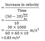 The speed of a car moving on a straight road becomes 50 km/hr  from 20 km/hr  in 10 seconds. The acceleration of the car is—