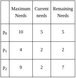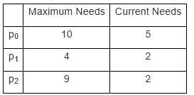 Suppose a system has 12 magnetic tape drives and at time t0, three processes are allotted tape drives out of their as given below: