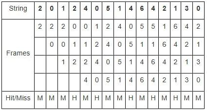 Hit/Miss Table: