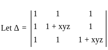 Δ = 1 (x2y2z2 – 0) – 0 + 0
