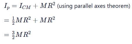 A solid cylinder of mass M and radius R rolls on a flat surface. Its moment of inertia about the line of contact is