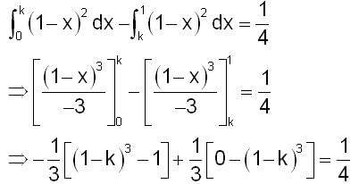 Here, area between 0 and k is A1, and between k and 1 is A2. Therefore,