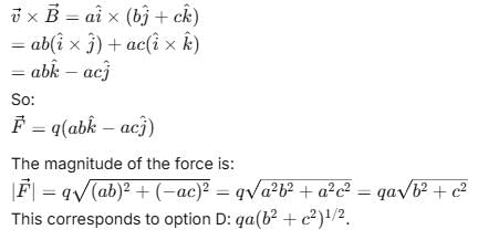 T, where a, b and c are constants. The magnitude of the force experienced by the particle is