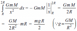 If g is the acceleration due to gravity on the surface of the Earth, then the gain in potential energy of an object of mass m raised from the Earth's surface to a height equal to the radius R of the earth is
