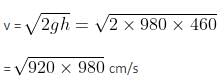A tank is filled with water of density 1 g/cm3 and oil of density 0.9 g/cm3. The height of water layer is 100 cm and that of oil layer is 400 cm. If g = 980 cm/s2, then the velocity of efflux from an opening in the bottom of the tank will be