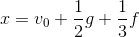 The velocity of a particle is v = v0 + gt + ft2. If its position is x = 0 at t = 0, then its displacement after unit time (t = 1s ) is