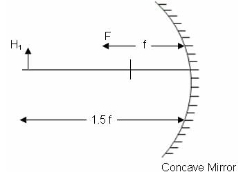 In the following figure, the height of the object is H1 = + 2.5 cm. What is the height of the image of H1?