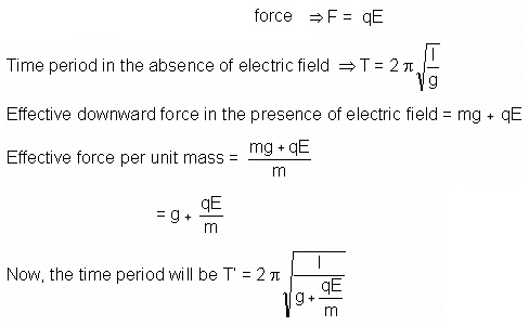 A simple pendulum consists of a sphere of mass m suspended by a thread of length l. The sphere carries a positive charge q. The pendulum is placed in a uniform electric field of strength E directed vertically upwards. With what period will the pendulum oscillate if the electrostatic force acting on the sphere is less than the gravitational force?