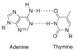 How many hydrogen bonds are present between a pair of thymine and adenine in DNA?