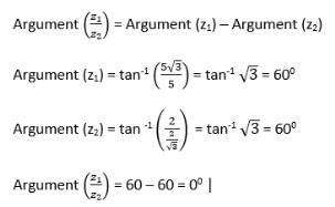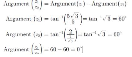 Given two complex numbers, the argument of z1/z2 in degrees is