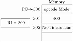 An instruction is stored at location 300 with its address field at location 301. The address field has the value 400. A processor register R1 contains the number 200. What will be the addressing mode of the effective address of the instruction is 702?