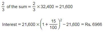 The difference between the simple interest and the compound interest at the rate of 33.33% p.a. for 2 years is Rs. 3600. If 2/3rd of this sum is invested at 15% p.a. compound interest for 2 years, what will be the interest (in Rs.) obtained?